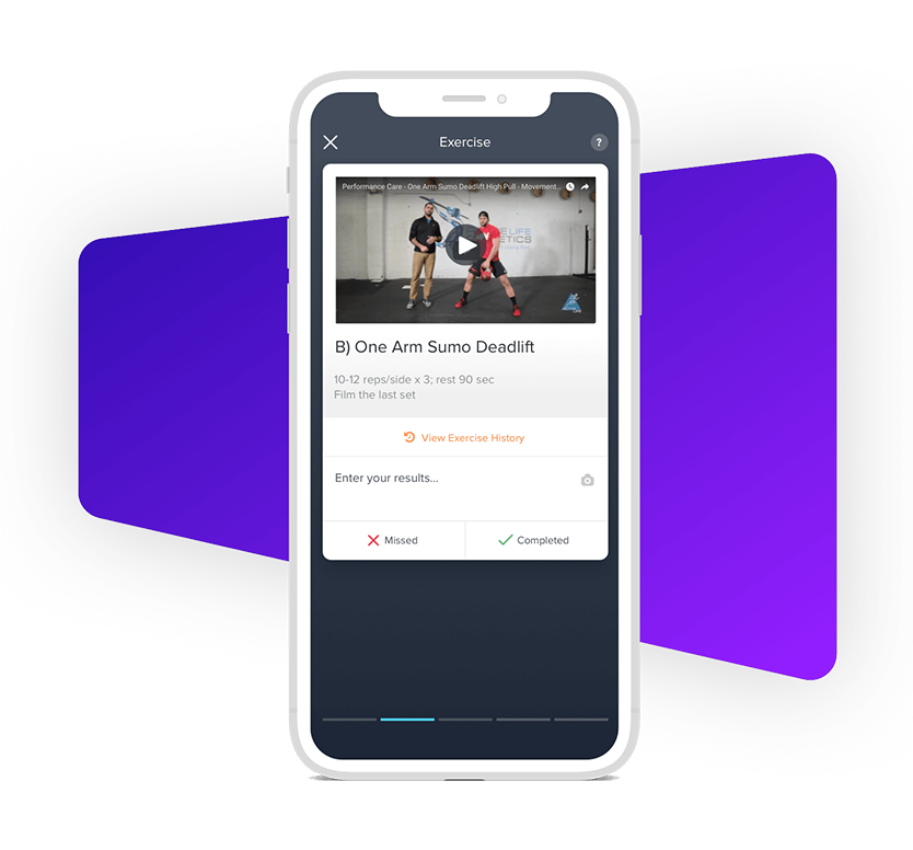 - Un plan d’entraînement sur mesure, disponible via une application dédiée où chaque exercice est accompagné d’une vidéo explicative. Tu pourras suivre ton programme pas à pas, enregistrer tes performances et voir ta progression en temps réel.